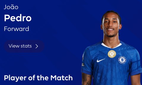 最终经过英超官网球迷投票,若昂-佩德罗以89%的超高得票率当选全场最佳球员。