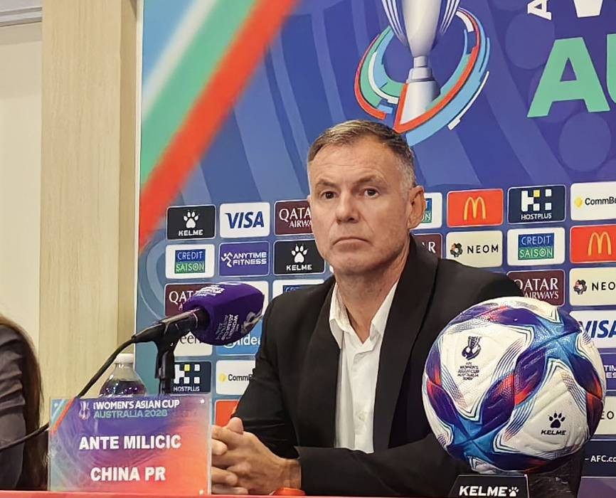 北京时间3月5日,女足亚洲杯小组赛乌兹别克斯坦vs中国的赛前新闻发布会在西悉尼体育场进行。中国队主教练米利西奇携球员陈巧珠出席。
