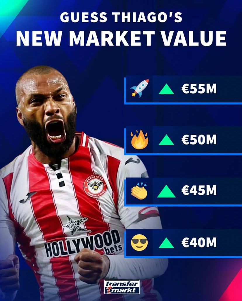 北京时间3月4日,德转预热了布伦特福德前锋伊戈尔-蒂亚戈的身价更新,最高涨至5500万欧元,最低涨至4000万欧元。