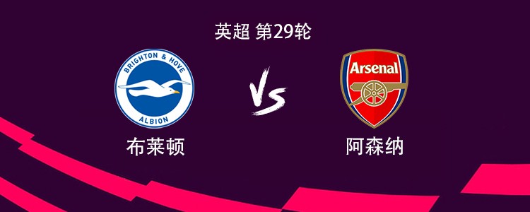 北京时间3月5日凌晨3点30分,英超联赛第29轮展开一场焦点战役,阿森纳对阵布莱顿。赛前,双方公布首发阵容。