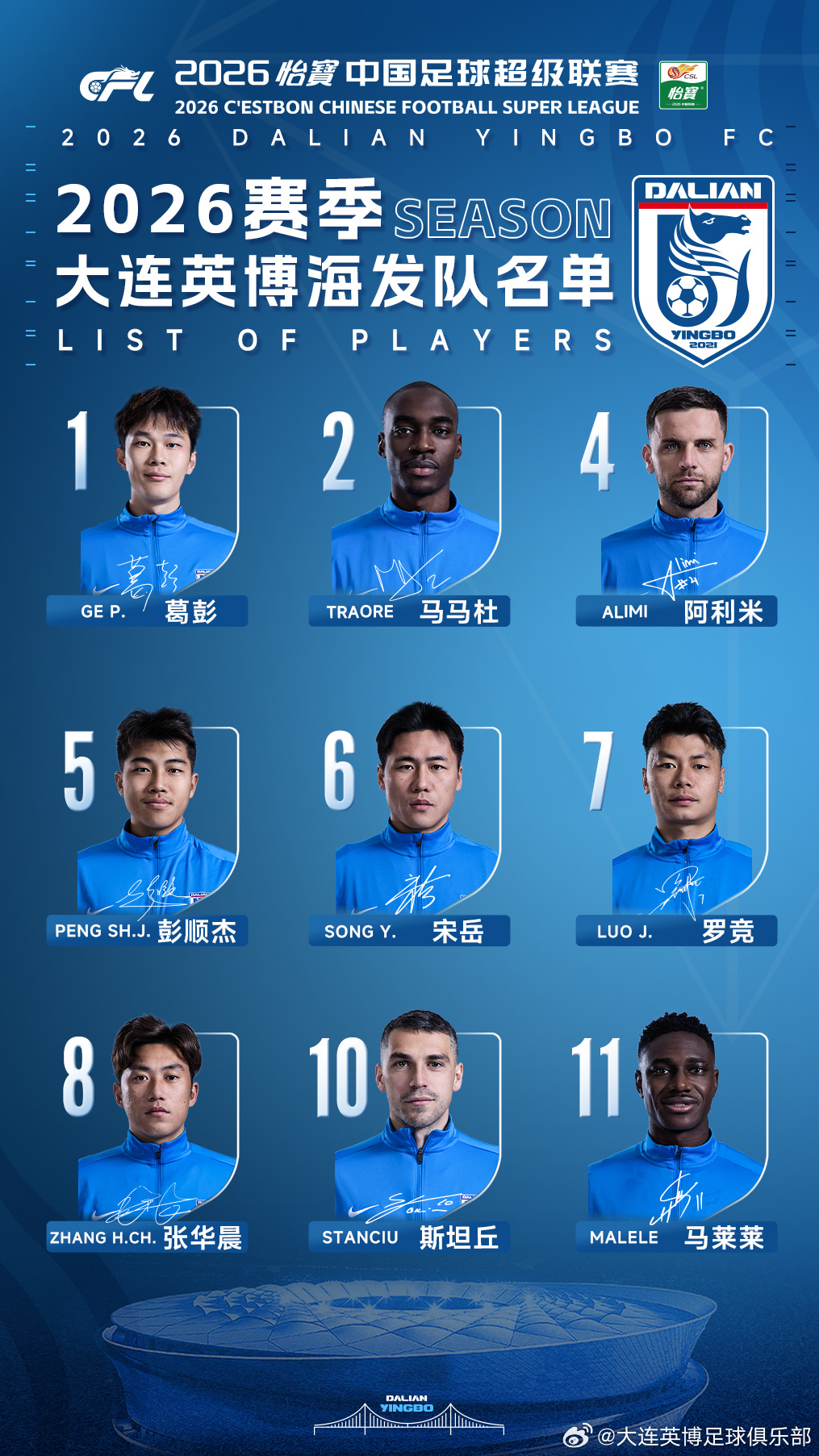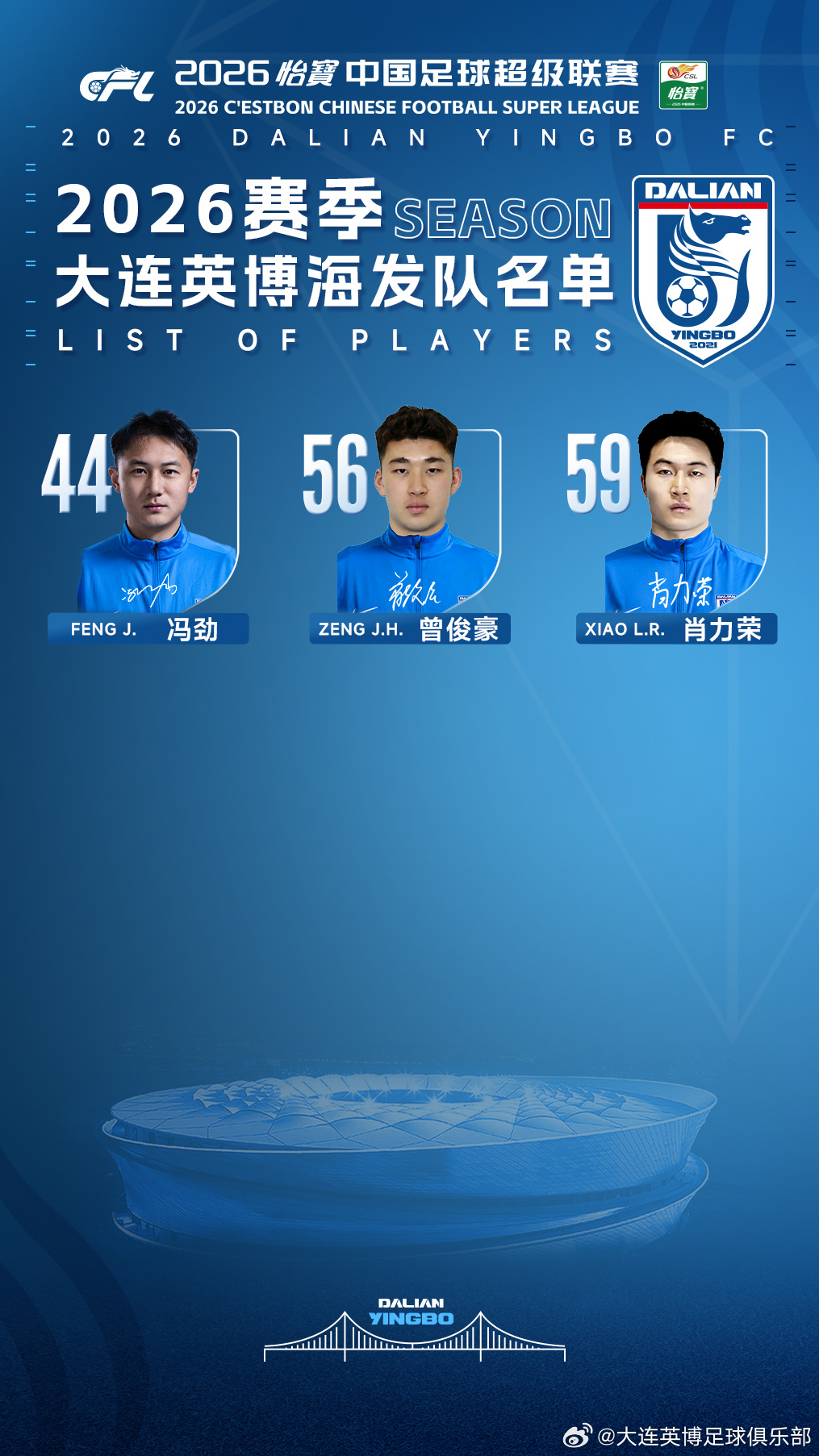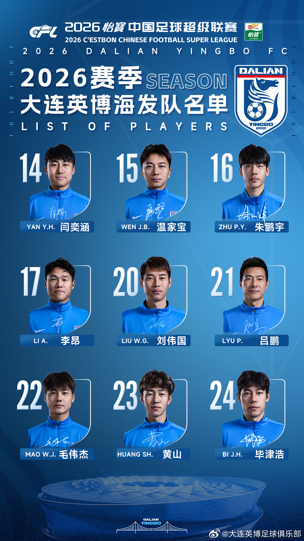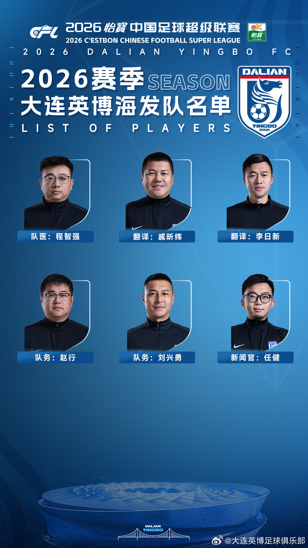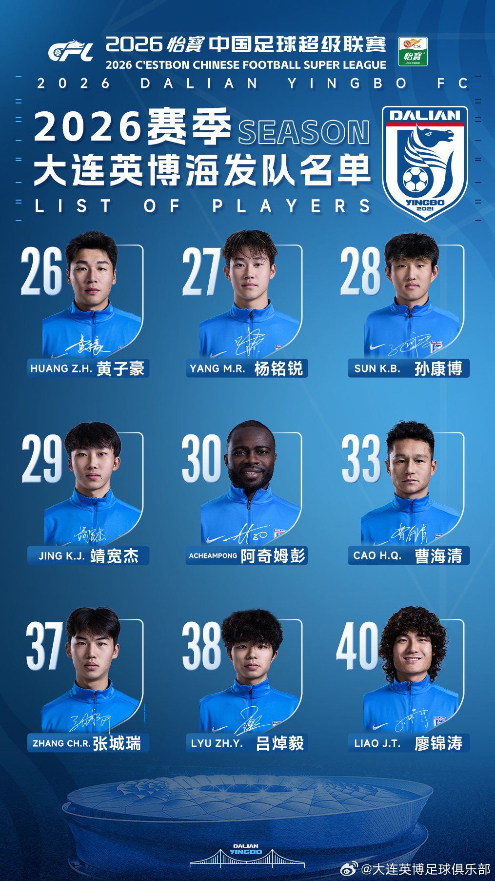 2026赛季大连英博海发队名单