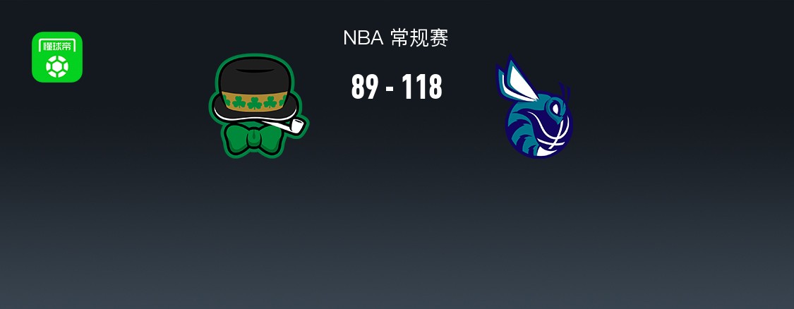 第四节凯尔特人加尔扎拿下6分,黄蜂拉梅洛-鲍尔拿下6分,最终凯尔特人89-118不敌黄蜂