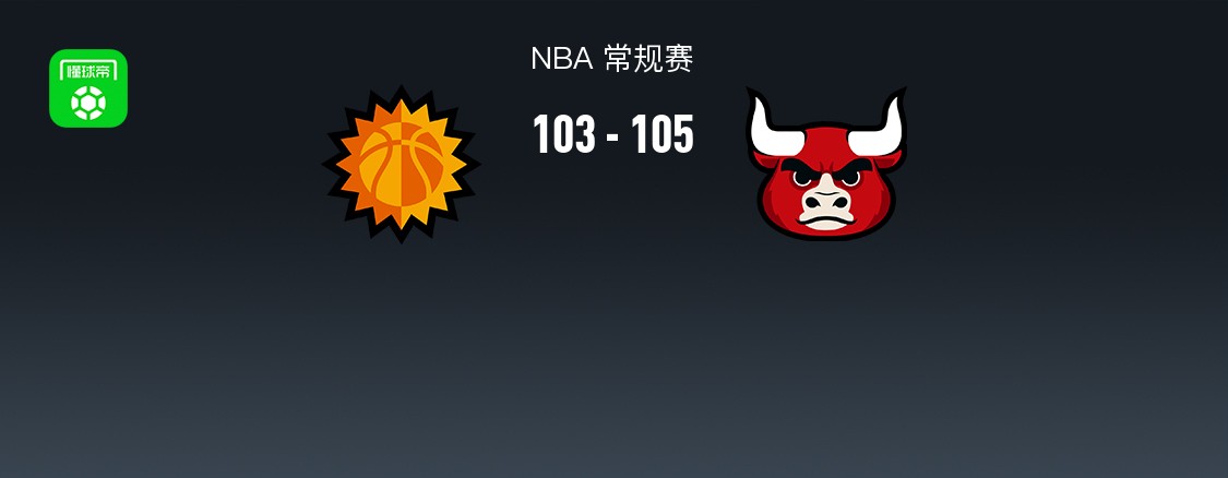 第四节太阳科费拿下9分,公牛亚布塞莱拿下7分,最终太阳103-105不敌公牛