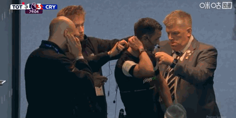 第80分钟,小插曲,主裁设备出现问题前往场边调整