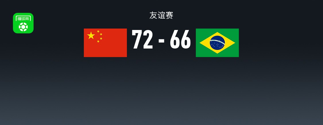 北京时间3月6日友谊赛,中国女篮对阵巴西女篮。半场中国女篮44-32巴西女篮,最终中国女篮72-66巴西女篮。中国女篮刘禹彤17分6板,陈玉婕12分4板3助;巴西女篮卡米拉-卡多佐23分9板,桑加莉9分2板1助。