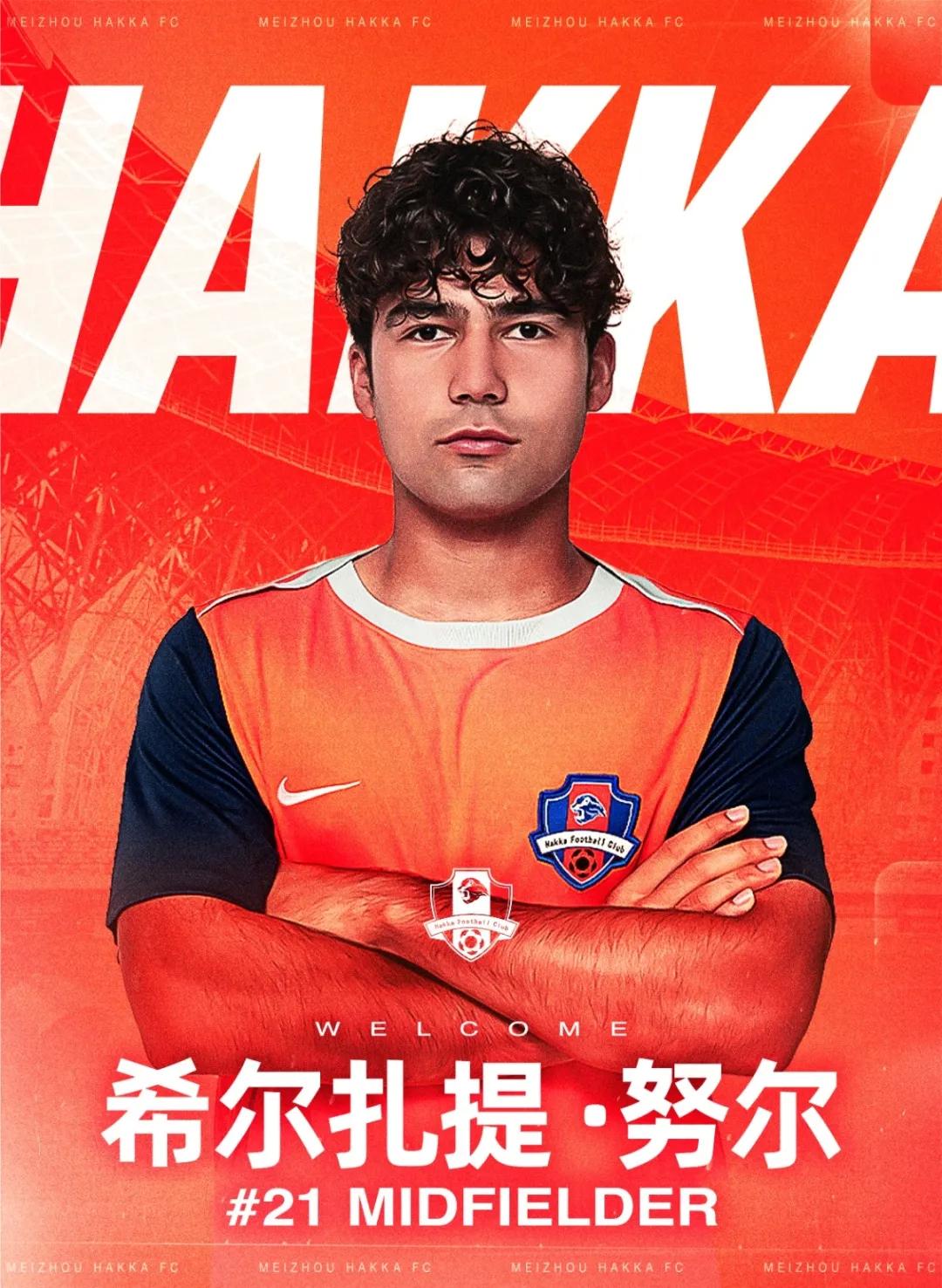 希尔扎提-努尔,2004年1月1日出生于新疆喀什,身高178cm,体重67kg,司职后腰。此次以租借方式加盟梅州客家,将身披21号战袍为球队征战各项赛事。