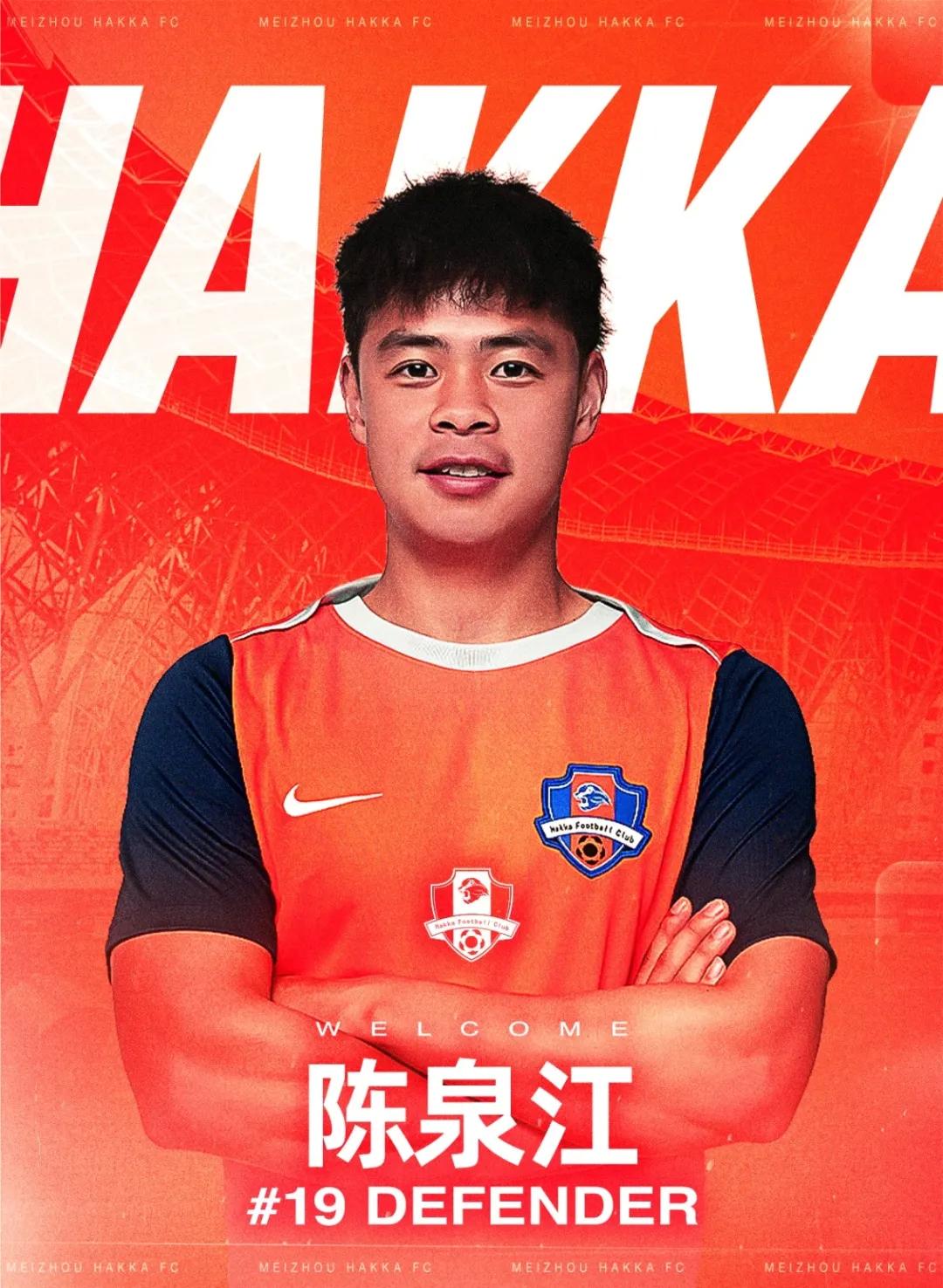 陈泉江,2000年7月10日出生,身高175cm,体重70kg,司职后卫。此次加盟梅州客家,将身披19号球衣代表球队征战各项赛事。
