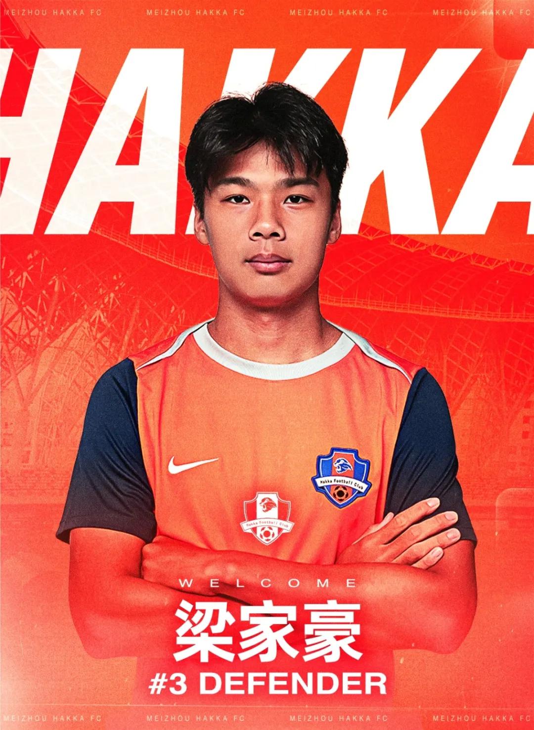 梁家豪,2006年1月2日生,身高185cm,司职中后卫、边后卫。此次加盟梅州客家,将身披3号球衣代表球队征战各项赛事。