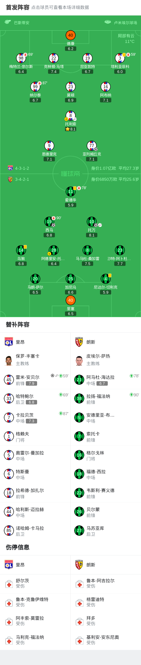 第23分钟,托万门前补射破门先拔头筹,朗斯1-0里昂