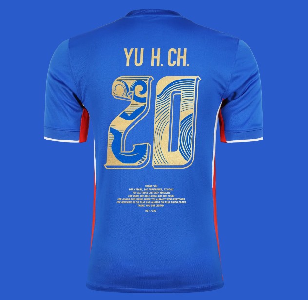 球衣背后的一段特别寄语,以简洁而坚定的句式回望六年征程,凝聚蓝血人的敬意——致谢逆境中的挺身而出,致谢荣耀后的倾尽全力,致谢始终守望这抹蓝色的坚定。