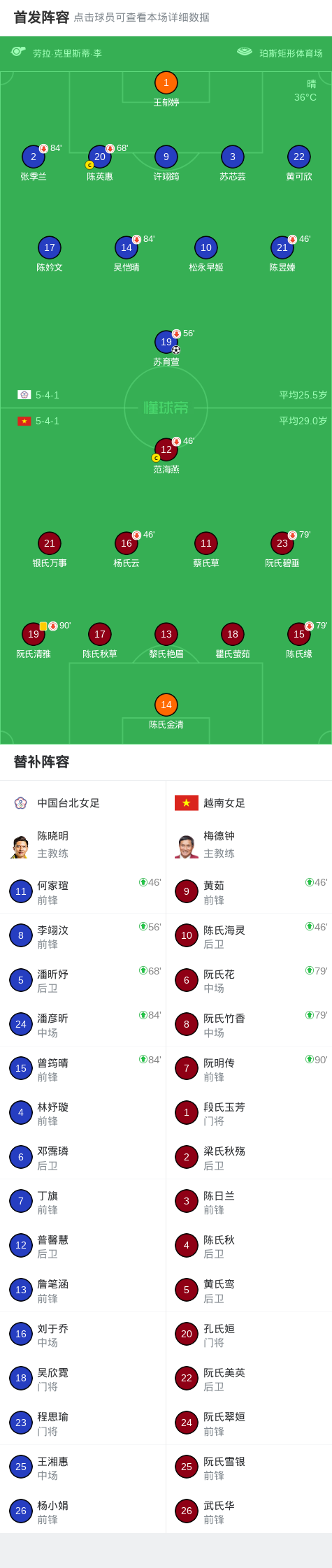 北京时间3月7日女足亚洲杯 小组赛 第2轮,中国台北女足对阵越南女足。中国台北女足苏育萱破门。最终比分中国台北女足 10 越南女足。
