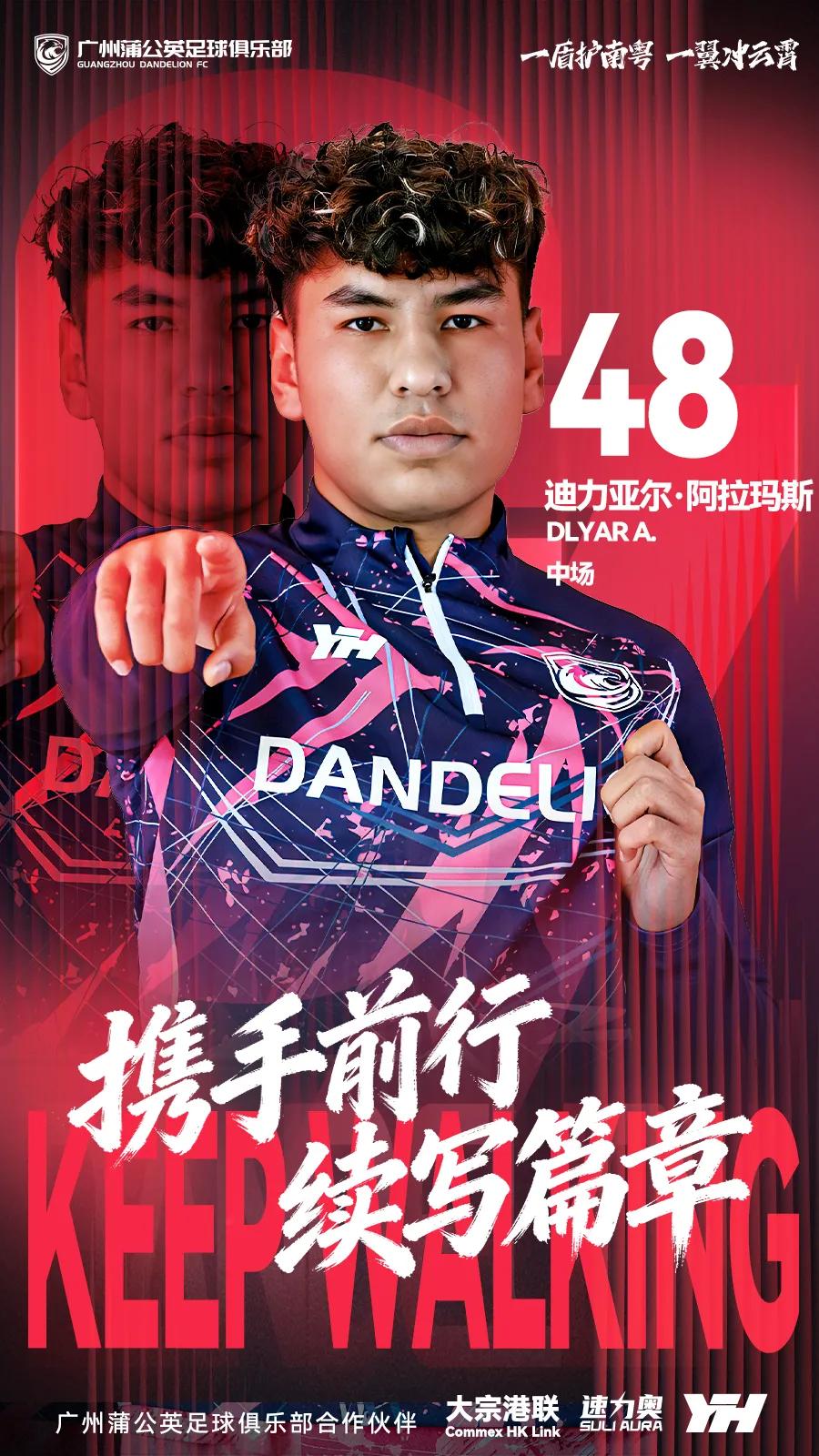 新赛季征程在即,迪力亚尔-阿拉玛斯已整装待发,将继续与广州蒲公英足球俱乐部并肩作战,全力以赴迎接全新挑战。迪力亚尔·阿拉玛出生于2007年,来自新疆,出自恒大足球学校青训体系,是一名技术型中场球员。