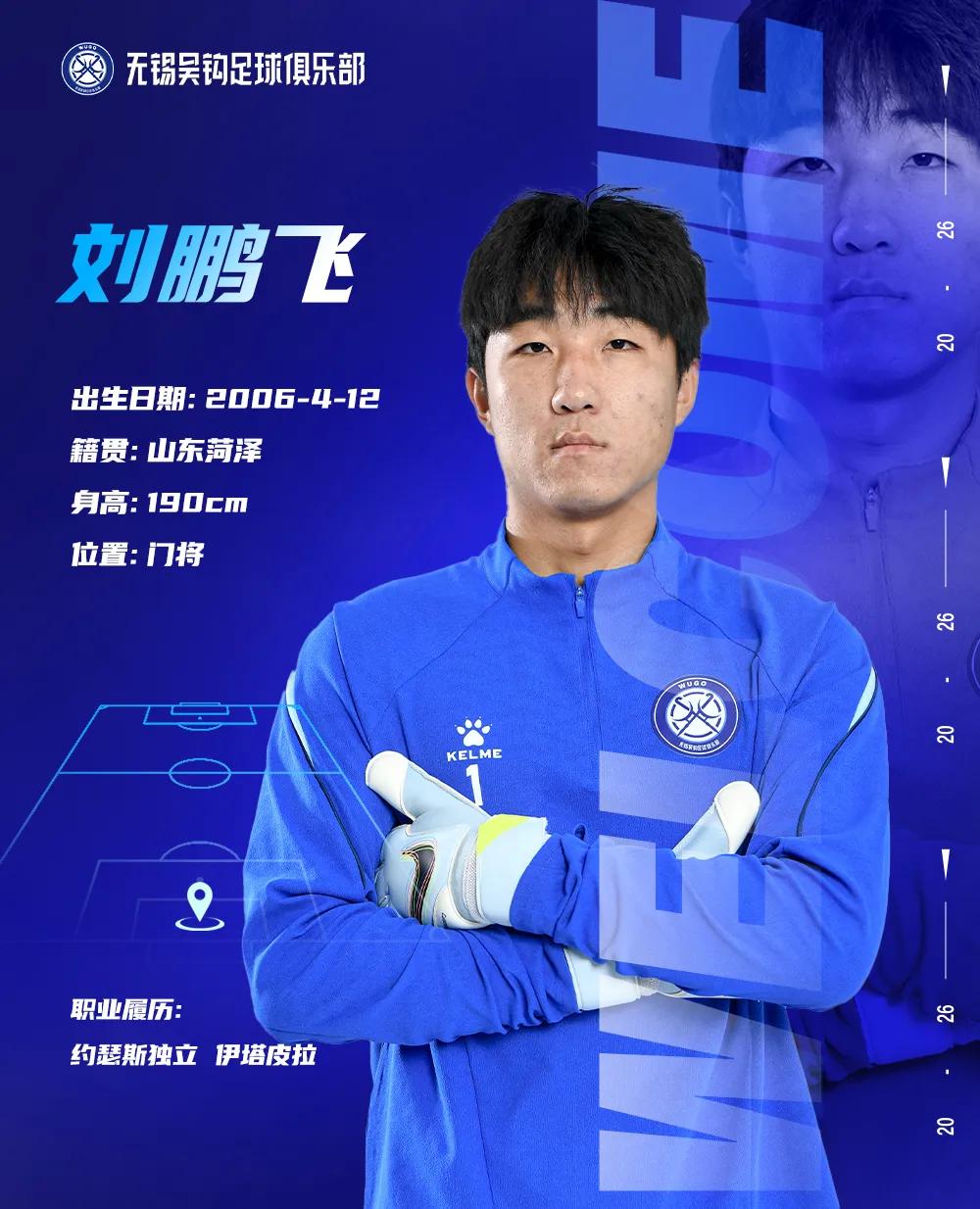 无锡吴钩官方宣布,中场李博文、门将刘鹏飞加盟俱乐部。