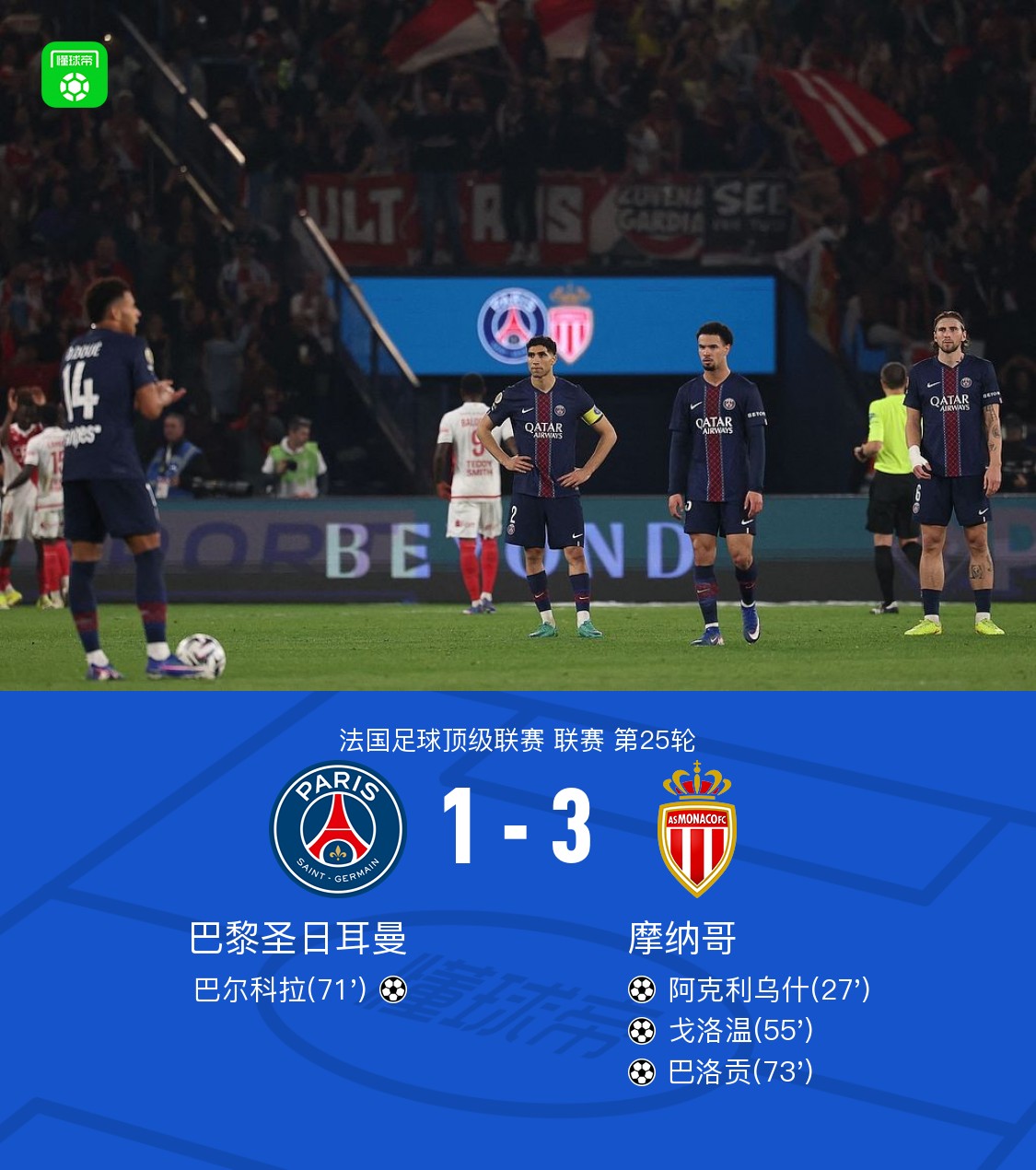 【剑南春丨巴黎1-3摩纳哥,阿克利乌什、巴洛贡传射建功】