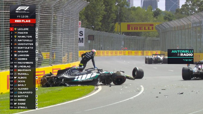 北京时间3月7日,F1 2026赛季揭幕战继续在澳大利亚阿尔伯特公园赛道举行,三练当中,赛恩斯赛车停在维修区门口引发红旗,安东内利发生了严重的碰撞,赛会再度出示红旗。最终在这场屡次中断的三练中,拉塞尔在最后时刻跑出了最快圈,他的成绩为1分19秒053。