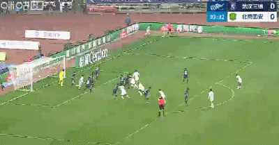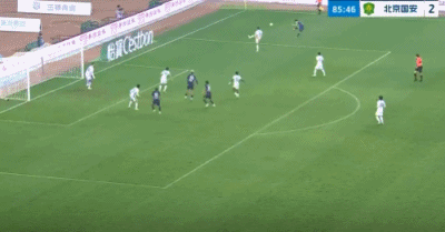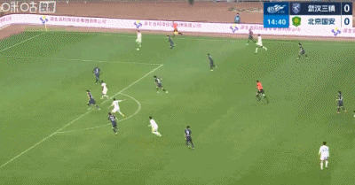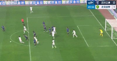 第44分钟,法比奥接王刚传中头球破门!国安客场1-0领先三镇!