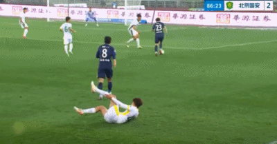 第64分钟,法比奥禁区扣球低射打门,打在队友曹永竞身上出了底线