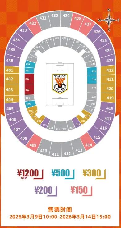3月14日15时30分,山东泰山主场对阵北京国安,本场比赛最高票价是1200元,最低150元,对比上赛季有明显下调。按照俱乐部安排,3月9日,泰山队球迷可以开始购票。