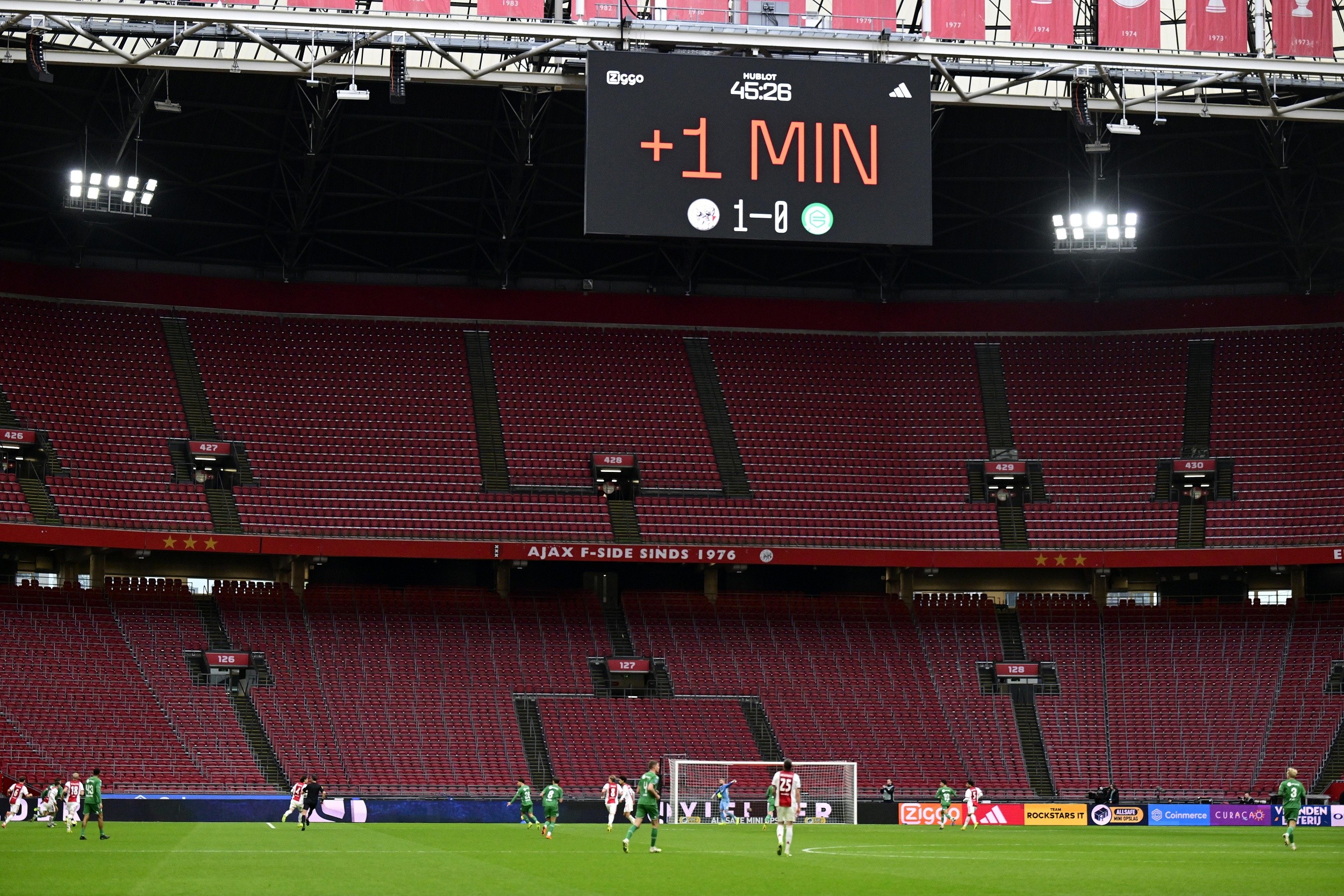 荷兰足球甲级联赛,阿贾克斯队与格罗宁根队比赛的剩余部分在空场进行。此前,因球迷两次燃放烟花,比赛被迫中断