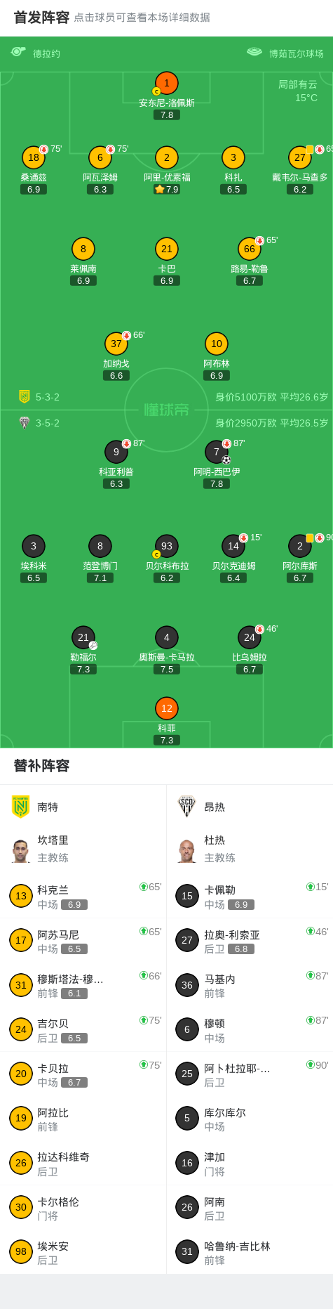 北京时间3月8日法国足球甲级联赛第25轮,南特主场对阵昂热。比赛中,昂热球员通过配合由阿明-西巴伊完成破门。最终比分南特0-1昂热。