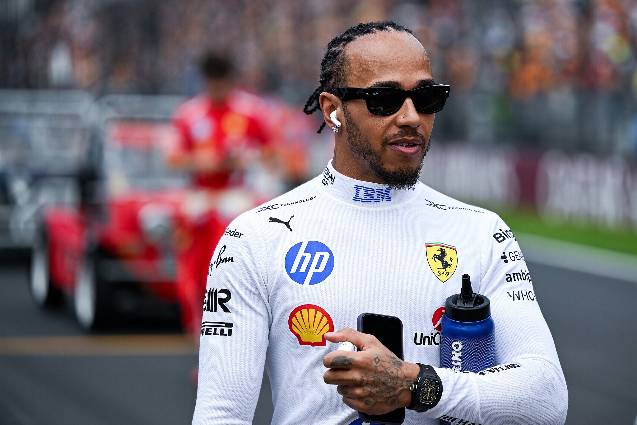 但当比赛中两次事件引发虚拟安全车时,法拉利车队决定不让勒克莱尔和汉密尔顿进站。