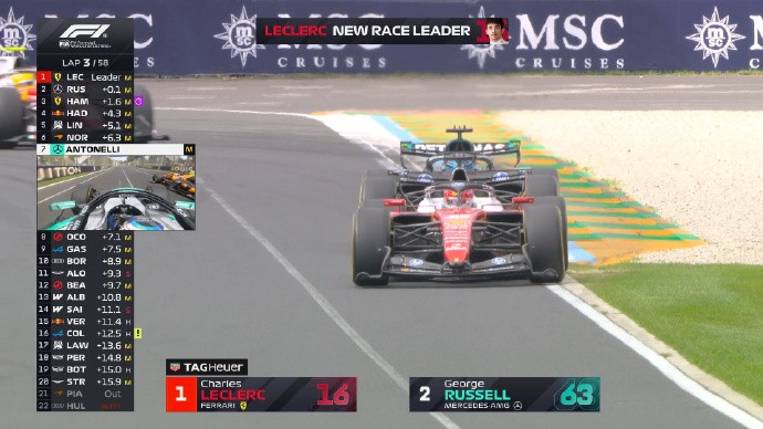 第3圈:勒克莱尔再次反超拉塞尔,回到P1