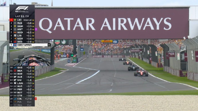 比赛进入最后十圈,维斯塔潘和诺里斯依然在激烈地争夺第五