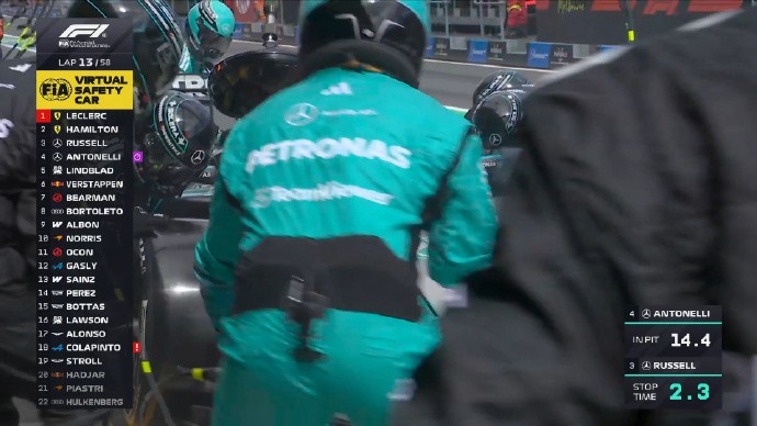 第二次虚拟安全车结束,除了法拉利外的所有赛车都已完成进站