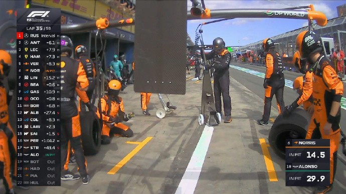 第35圈:诺里斯进站,维斯塔潘上升到P5