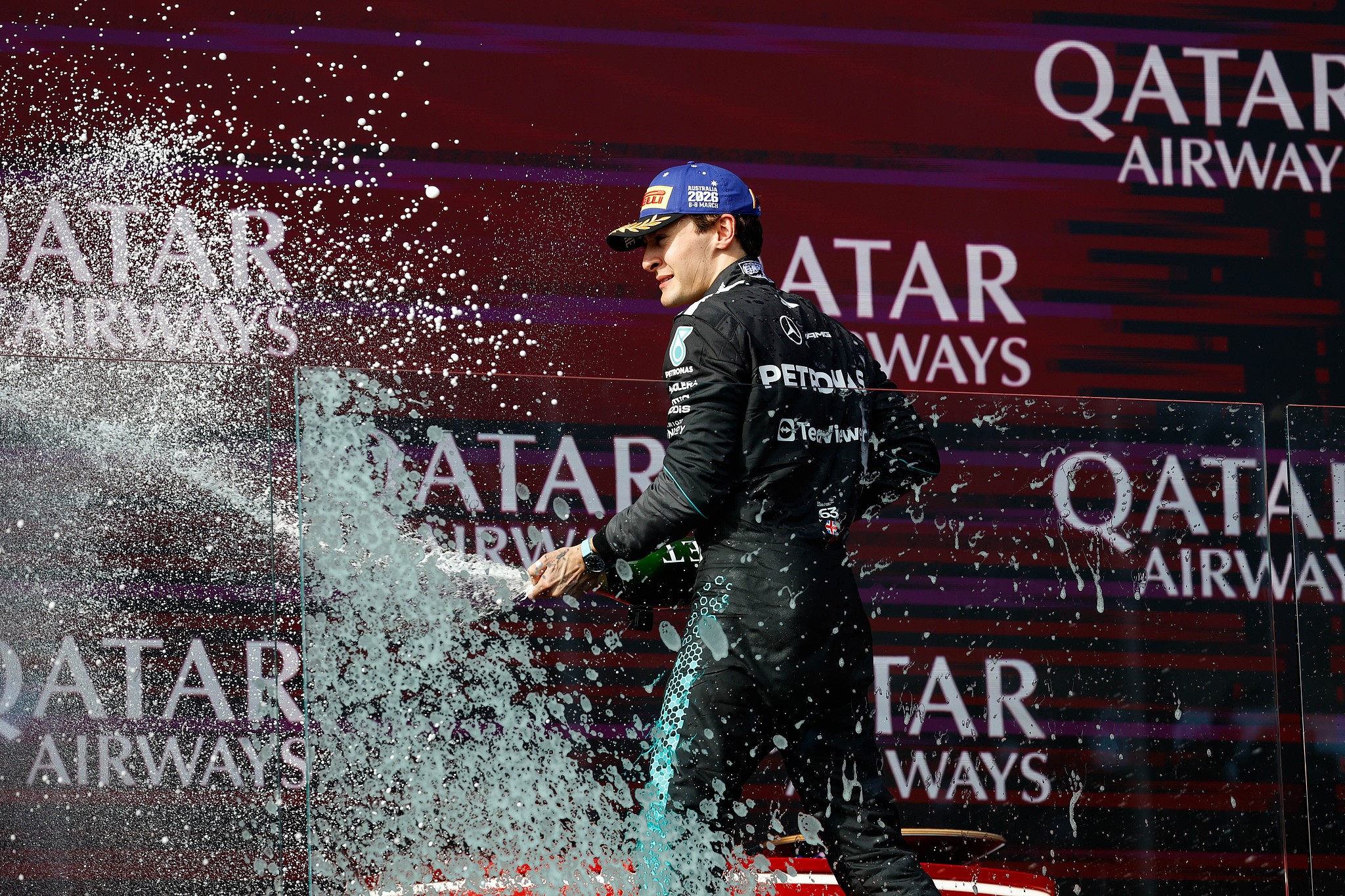 尽管如此,拉塞尔随后展开追击,并在比赛初期与勒克莱尔争夺头名位置,法拉利甚至一度看到了夺冠的希望。但在哈贾尔的赛车停在赛道上后,赛会出动了虚拟安全车,这让拉塞尔得以用较小的时间损失完成进站。