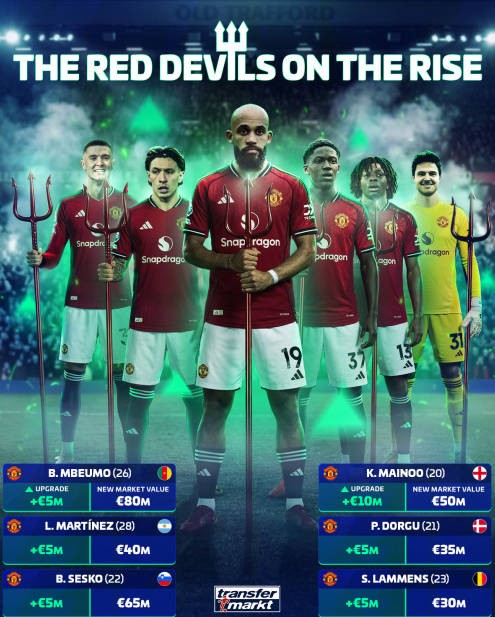 根据德国转会市场的介绍,在不敌纽卡之前,曼联曾在11场英超比赛中保持不败,自卡里克接替阿莫林上任以来,球队保持着火热的状态,全队总身价上涨了3500万欧。