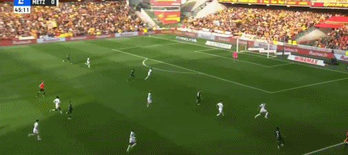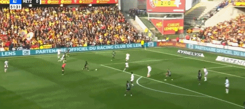 第51分钟,海达拉与乌多尔二过二配合后破门,朗斯3-0梅斯