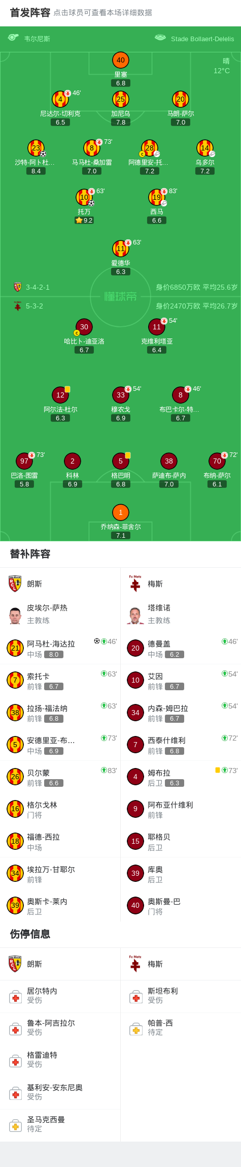 北京时间3月8日法国足球顶级联赛 联赛 第25轮,朗斯主场对阵梅斯。朗斯沙特-阿卜杜勒哈米德破门,托万破门,阿马杜-海达拉破门。最终比分朗斯 3–0 梅斯。