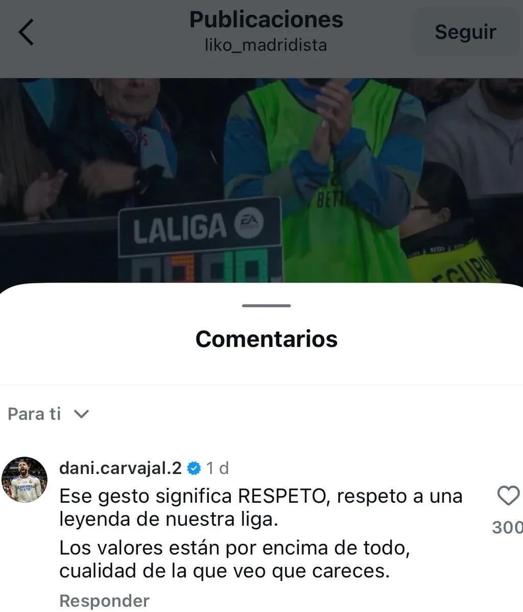 卡瓦哈尔在社媒上回复了一名指责他为塞尔塔传奇鼓掌的用户:“这个举动代表尊重,是对我们联赛传奇的尊重。价值观高于一切,这正是我看到你所缺乏的品质。”