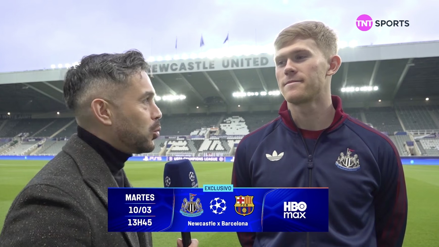 欧冠1/8决赛首回合,纽卡将主场对阵巴萨,纽卡后卫刘易斯-霍尔赛前接受了TNT体育墨西哥频道的采访。