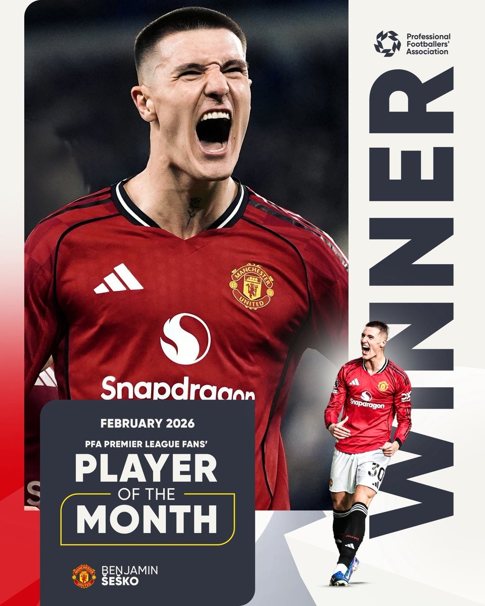 现年22岁的谢什科2月代表曼联在英超出场4次,打进3球,帮助红魔取得了3胜1平的不败成绩。如今PFA官方宣布,这位斯洛文尼亚的锋线球星当选球迷票选的英超2月最佳球员。