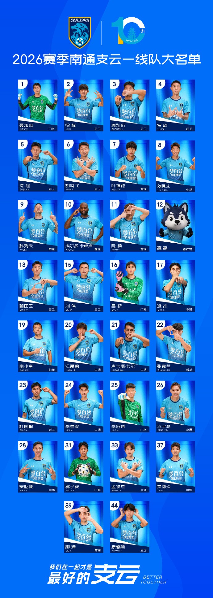 南通支云2026赛季一线队大名单: