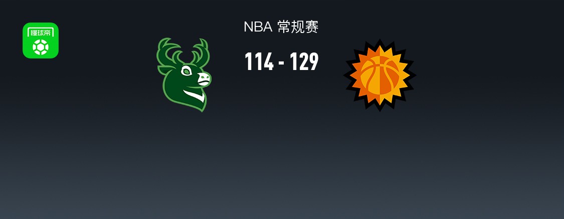 第四节雄鹿字母哥拿下8分,太阳吉莱斯皮拿下9分,最终雄鹿114-129不敌太阳