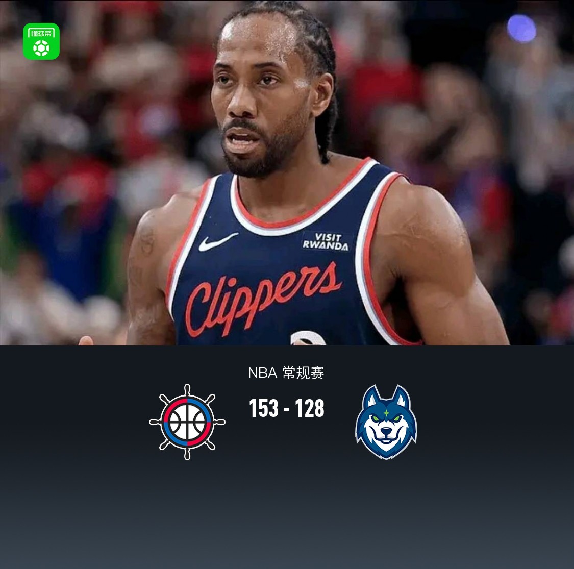第四节快船马图林拿下10分,森林狼杰伦-克拉克拿下11分,最终快船153-128战胜森林狼