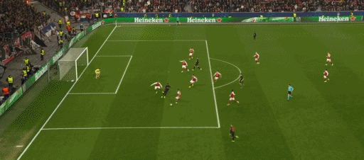 第19分钟,阿森纳流畅配合,马丁内利射门中框