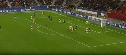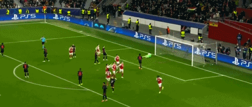 第45分钟,萨卡带球长驱直入,最后被抢断