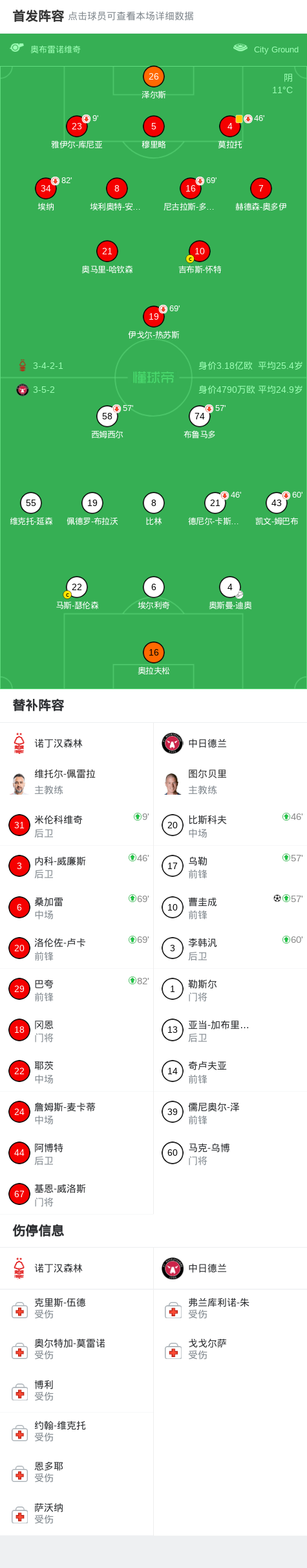 北京时间3月13日欧足联欧洲联赛 1/8决赛首回合,诺丁汉森林对阵中日德兰。中日德兰曹圭成破门。最终比分诺丁汉森林 01 中日德兰。