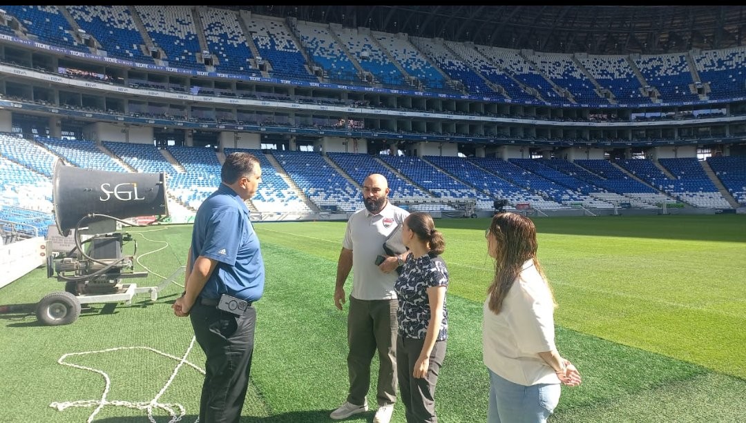 考察地点是蒙特雷队主场BBVA竞技场,这座球场因其外形宏伟也被球迷称为“钢铁巨人球场”(El Gigante de Acero)。据了解,两名助教此行主要任务是检查球场设施、训练条件以及比赛相关后勤安排,为球队可能在这里进行的世界杯关键附加赛提前做好准备。