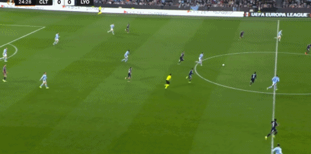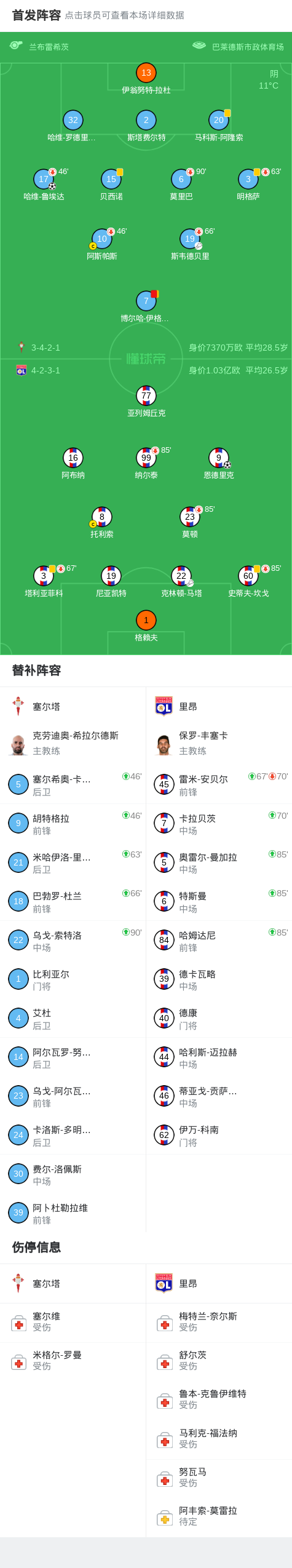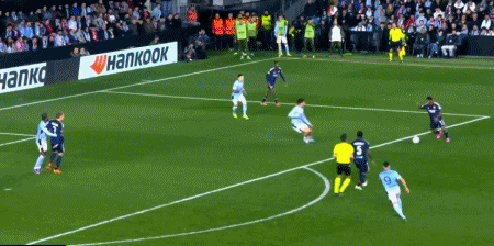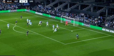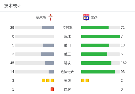 第25分钟,斯维德贝里横传,鲁埃达推射破门,塞尔塔1-0里昂