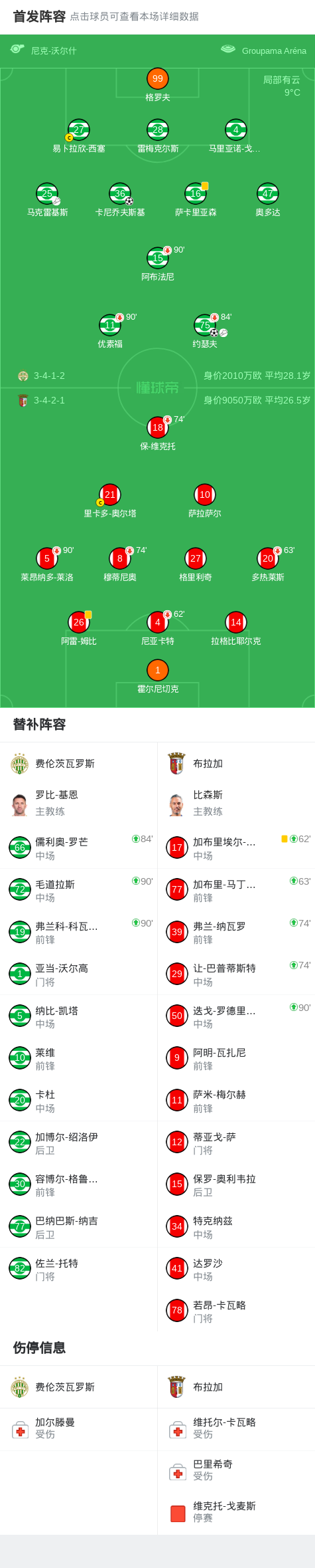 第32分钟,费伦茨瓦罗斯球员约瑟夫助攻卡尼乔夫斯基打入一球。