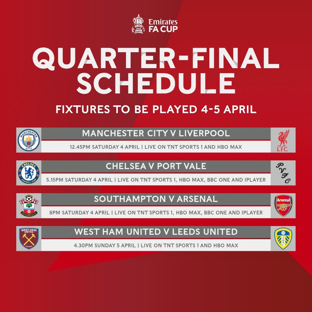 足总杯1/4决赛开球时间