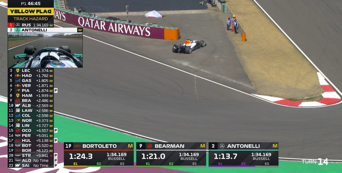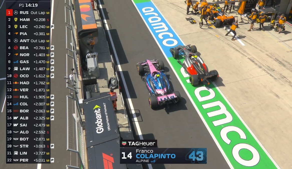 一练停表,拉塞尔全场最快,安东内利第二,诺里斯第三。