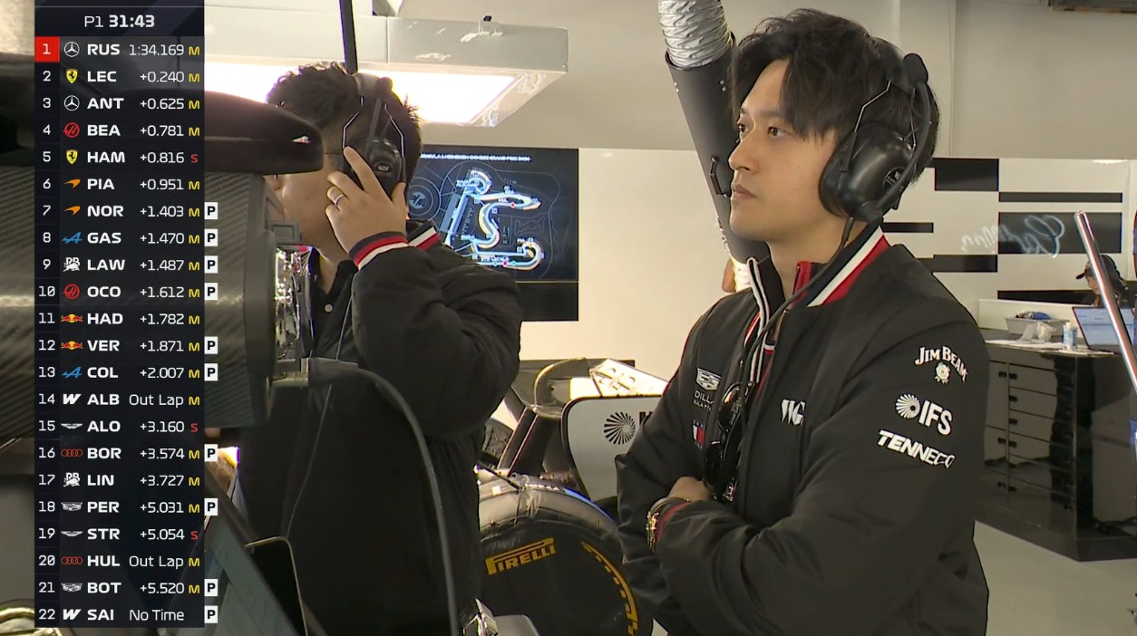 镜头给到凯迪拉克的储备车手周冠宇!
