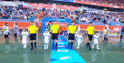 双方球员正在进场,大战一触即发