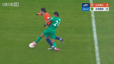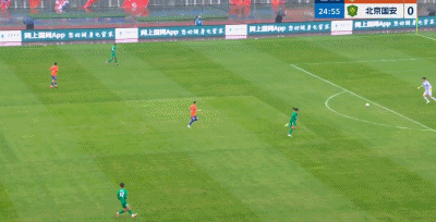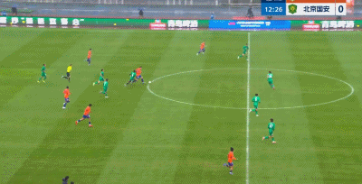 第26分钟,险些失误,国安门将张健智传球差点被断